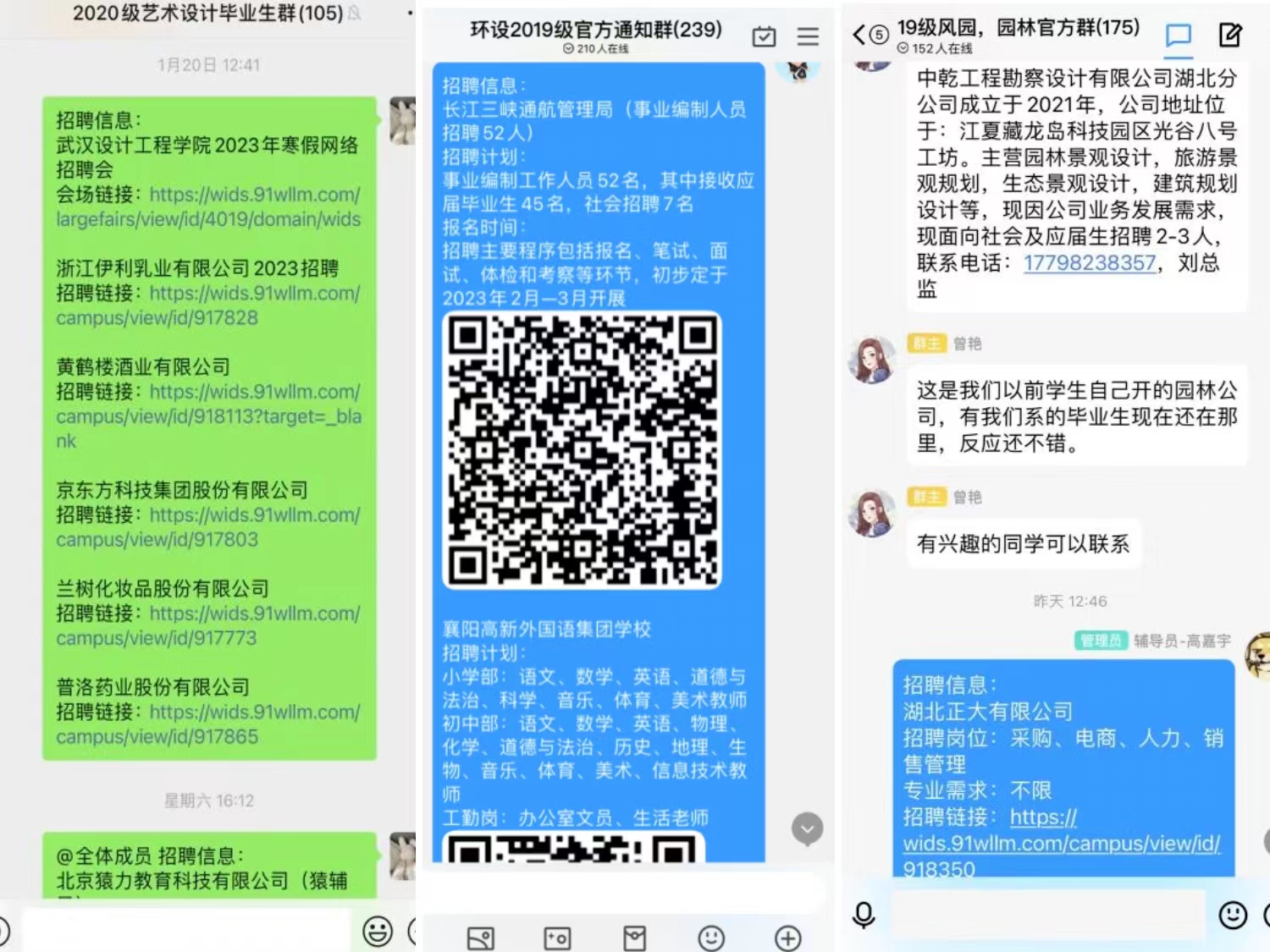 职位推送不停歇。利用网络平台持续推送就业岗位信息,多种方式促进用人单位和毕业生有序开展线上招就对接,不断提升就业岗位供给的数量和质量。寒假以来,公司毕业班辅导员、系主任、班主任在微信群、QQ群等平台先后发布“谈球吧体育官网入口2023年寒假网络招聘会“、“千校万岗·就业有位来”、“国家老员工就业服务平台——24365校园招聘服务”、“奋斗有我·国聘行动招聘会”等网络平台招聘信息,同时发布各企事业单位招聘信息百余条。