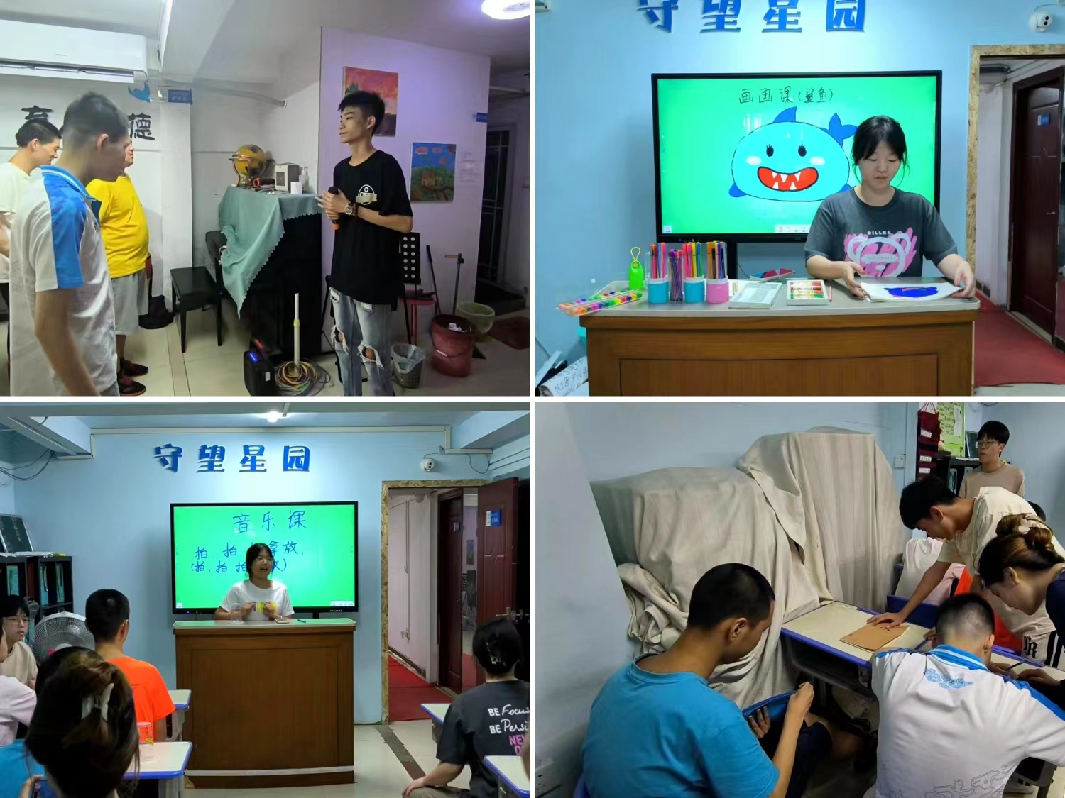志愿者们与青少年们肩并肩坐在一起,共同完成常识课,音乐课,画画课,体育课等的课程内容,协助老师引导青少年们一起完成。通过与孩子们的交流、学习和玩耍,既传递了爱心,也对于这类特殊的群体有了更多的了解。