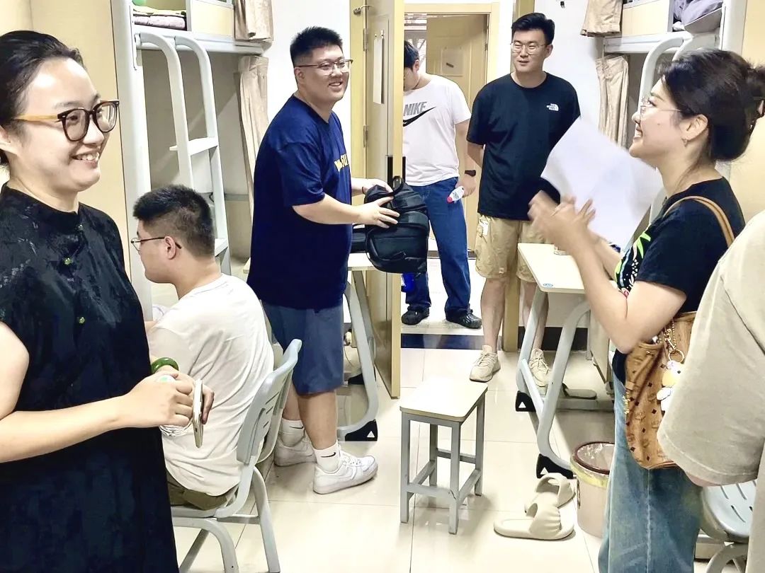 辅导员黄俊杰老师十分关心同学们到校后的适应情况,并嘱咐同学们要积极和辅导员、老师们沟通交流,日常在学习上互帮互助,尽快融入集体,建立起良好融洽的人际关系。辅导员李帅老师在与员工们的交谈中强调,宿舍作为员工学习生活的重要场所之一,需要同学们悉心爱护,共同维护,在日常生活中要加强自我管理,以积极的生活态度养成健康文明、乐观向上的优良习惯。辅导员李闯老师走进寝室与同学们亲切交谈,勉励同学们能够珍惜在校时光,充分利用课余时间开展各种有益身心健康的科研、文体活动,认真规划好自己的老员工活。