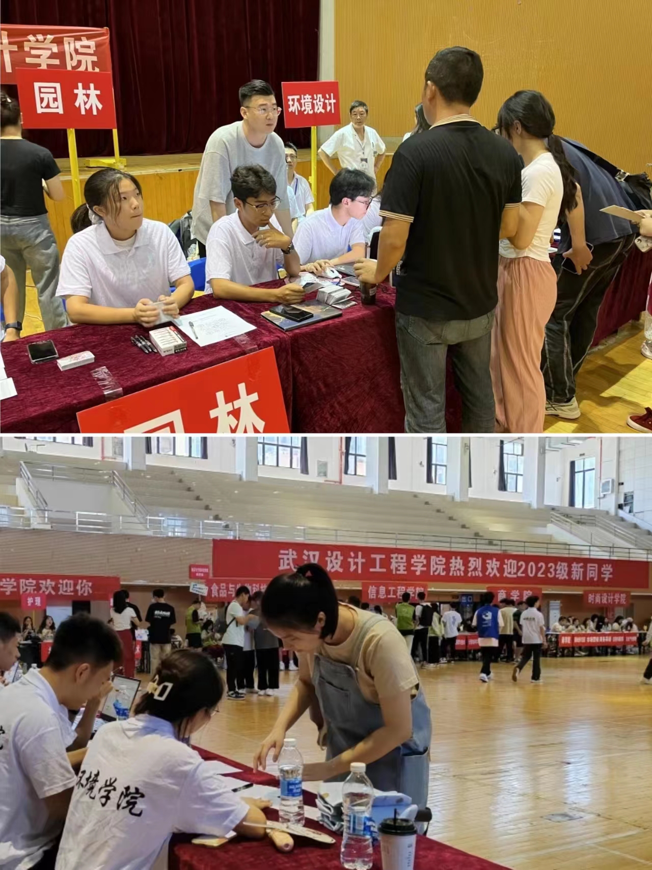 进入校园,新生及家长们在志愿者的引领下,统一前往老员工活动中心报到,辅导员和班助早已守候在大厅内等候同学们的到来,他们热情、耐心地为员工、家长解答问题、提供帮助,办理入学手续。