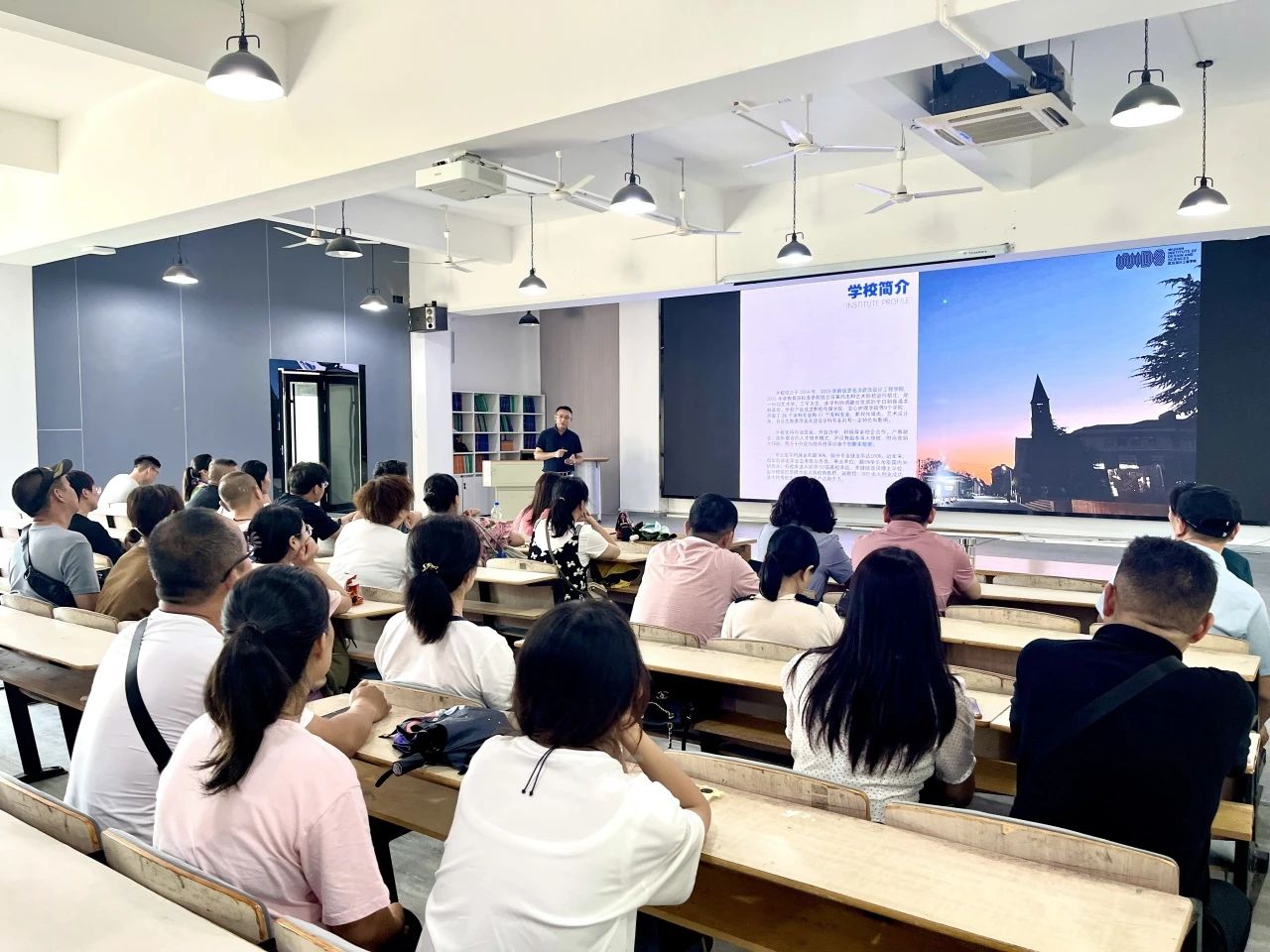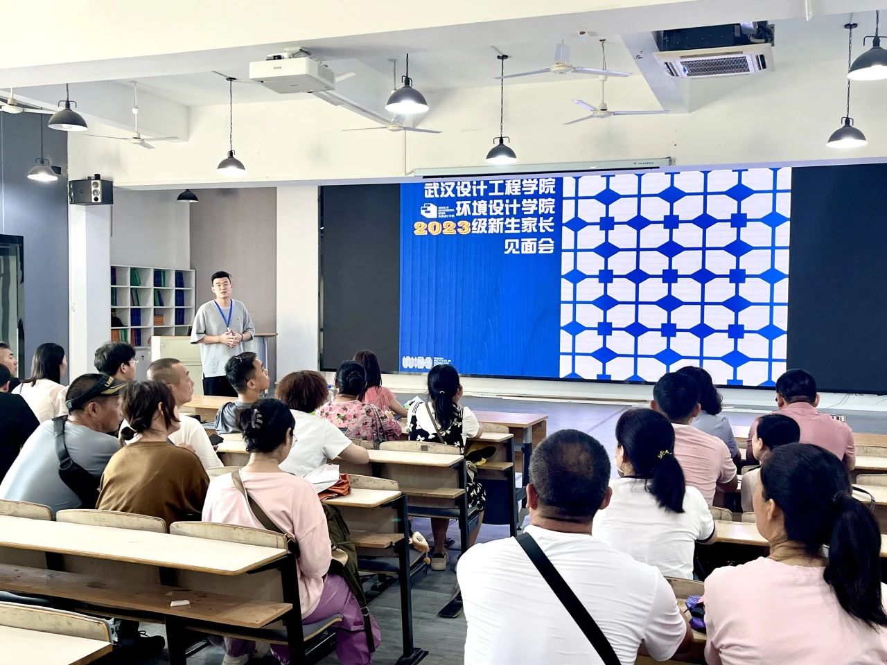 家长见面会由辅导员黄俊杰主持,分别由公司党总支书记谢曦临、谈球吧常务副经理叶砚蒇、园林系主任戴欢、环境设计系教师韩冀、环境设计系教师姚康进行介绍和讲解,共有百余名新生家长参与本次活动。