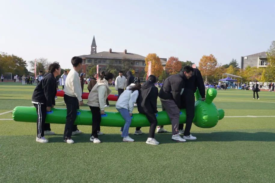 本次趣味项目包含“毛毛虫”、“夹球跑”、“跳绳”、“拔河”、“搭桥过河”、“螃蟹跑”六个个项目。在比赛中,参赛队员们配合默契、步伐一致,跳绳在手中翻飞,毛毛虫在绿茵球场快乐舞动,参赛队员们各显风采,现场欢笑声与呐喊声此起彼伏。