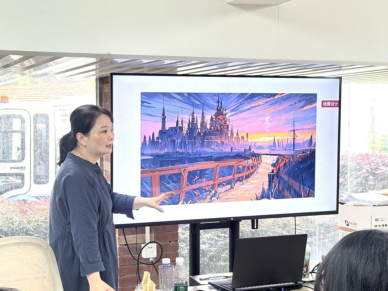 随后,陈老师将设计内容分为多个类别进行讲解。在场景设计部分,她强调其叙事魔力在于通过笔触与色彩构建沉浸式世界。当一幅充满奇幻色彩的设计图呈现在屏幕上时,不仅展现了线条与色彩的组合,更呈现出一个被精心构建的叙事空间。
