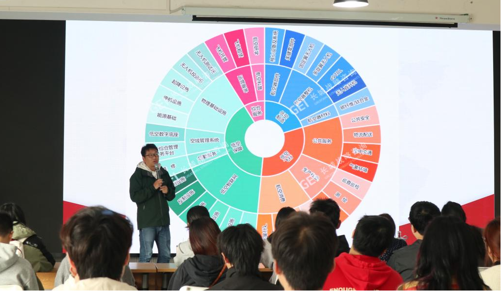 焦阳老师现任武昌理工公司创新创业公司副教授、武汉理工大公司外硕士生导师,拥有丰富的投资与人力资源行业背景。讲座伊始,他便指出,千米以下空域的经济活动正迎来爆发期,无人机是其核心载体。从林区捡松塔、湖泊巡查、农业喷药,到医疗运输、工程检测,无人机已渗透20多个行业,高效解决高危、低效难题。