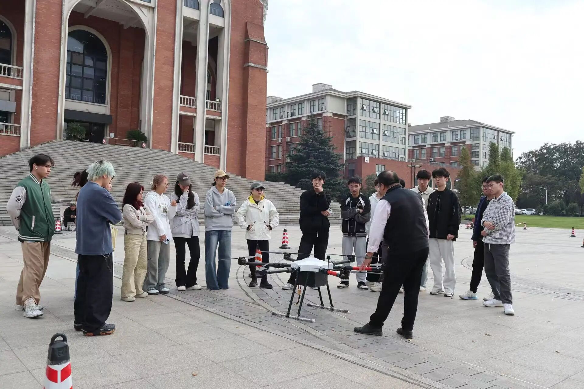 下午的课程则转向飞行基础理论与实操。同学们系统学习了无人机的飞行原理、遥控器操作逻辑、空域安全规则、电池使用规范及应急处理技巧。在地面站预规划实操环节,同学们通过软件操作,掌握了航线设计、飞行参数设置、任务规划及数据导出等方法。最后的室外基础实操训练中,同学们在导师分组指导下,重点练习了起降控制、原地自旋、八字绕桩、定点悬停等基础飞行动作,为后续进阶操作打下坚实基础。