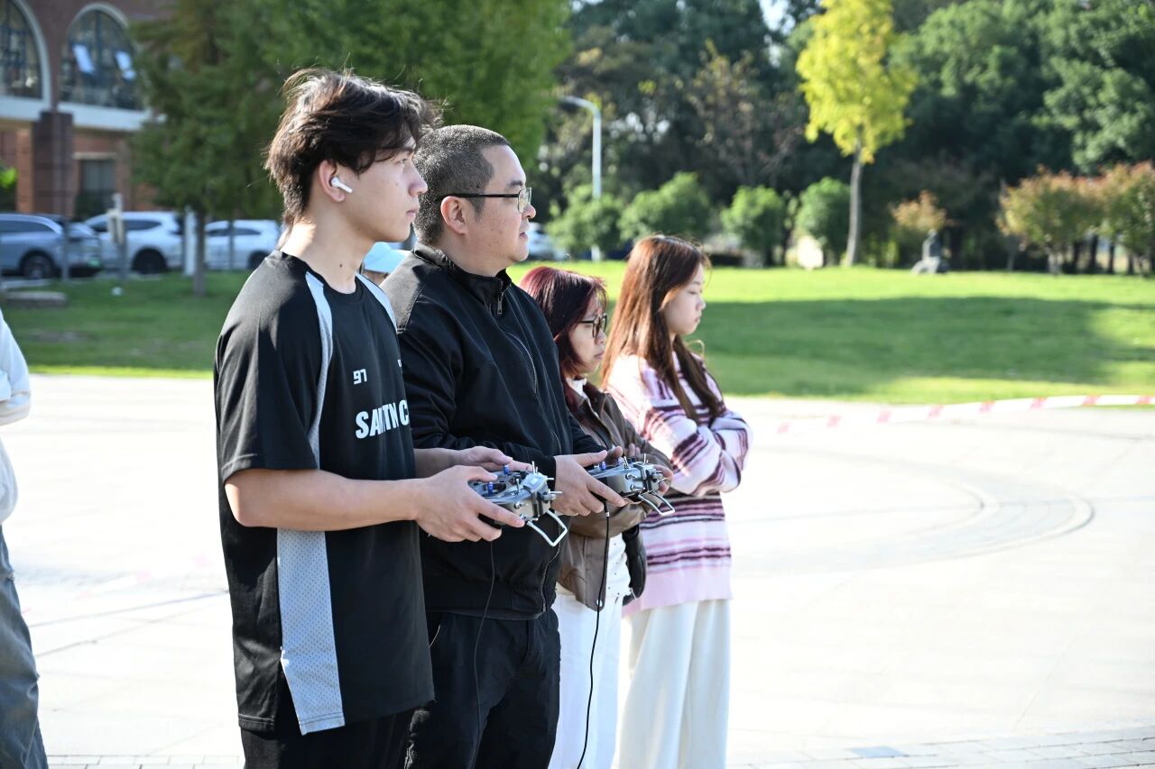 工作坊第二天的课程,转向户外实操,将飞行技能练到“实战能用”。上午的课程聚焦多机型实操与专项应用实训,同学们熟悉了航拍机的操作特性,并针对航拍场景进行了飞行稳定性训练,以适应后期取景构图的需求。导师全程一对一辅导,耐心细致地引导每一位同学熟悉航拍机操作特性,针对操作误区实时纠错,从飞行姿态到参数调整,精准解决每个问题。