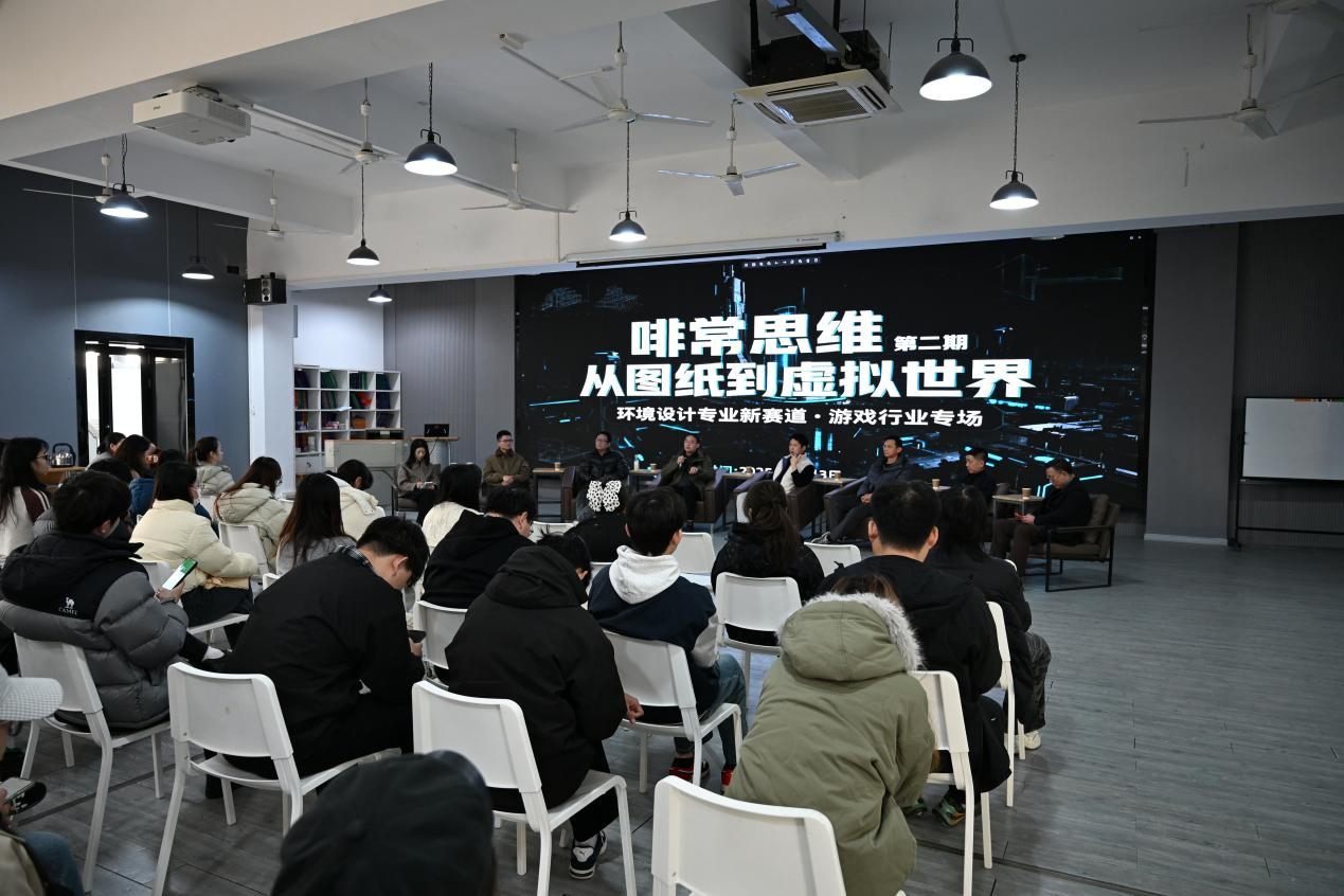 飘着浓郁咖啡香,第二期 【啡常思维】 交流活动在此暖心开讲。以 “从图纸到虚拟世界:环境设计专业的新赛道” 为主题,这场游戏行业专场分享,让职业困惑在思想碰撞中烟消云散。