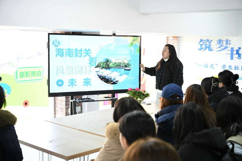本网讯(通讯员:孙韵皓 陈冠宇 殷志惠)2025年12月25日,谈球吧第四十三期“听班主任说”师生分享会在筑梦书苑一站式员工社区顺利举行。本期主讲班主任曾艳老师围绕“从海南封关看风景园林的未来”这一主题,引导同学们从专业角度理解当下国家发展趋向对于风景园林专业的影响,思考个人发展与国家发展的关系。