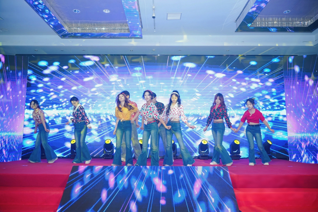当晚,武汉新世界酒店二楼宴会厅灯火辉煌、嘉宾云集。在庄重而热烈的氛围中,公司员工以自信昂扬的姿态亮相,通过现代舞与传统元素相融合的编创,演绎了主题为《双城霓虹·港韵芳华》的开幕舞蹈。同学们用舒展的身姿、流畅的队形和饱满的情感,展现了青年一代的蓬勃朝气与艺术素养,也传递出鄂港两地同心同行、共创未来的美好寓意,赢得了在场嘉宾的一致好评与掌声。