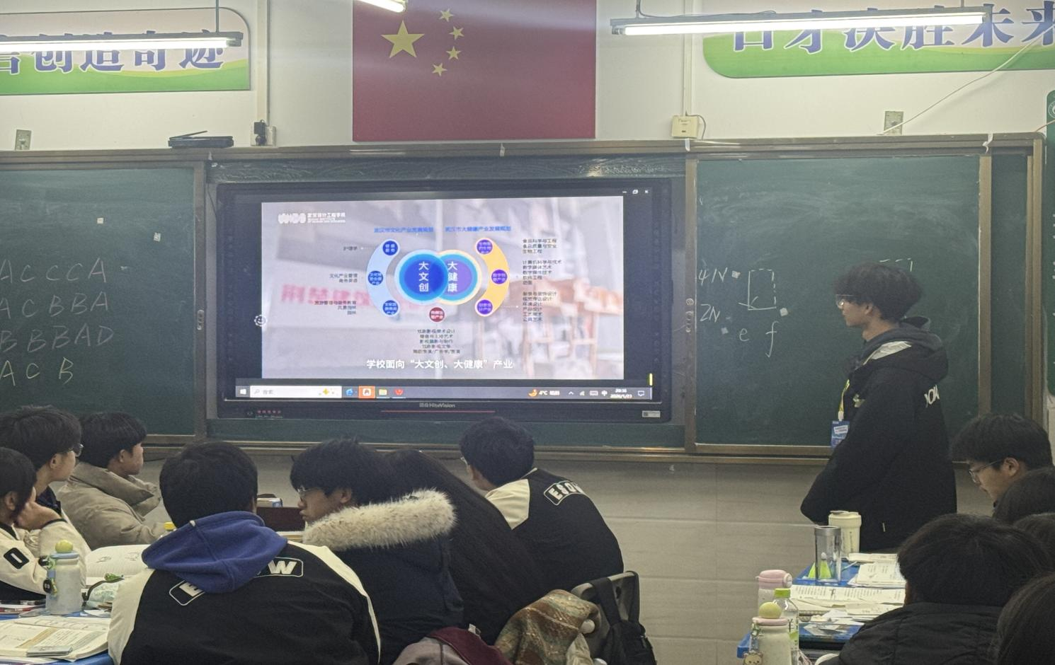 当日下午,宣讲在热烈期待中正式开始。伴随武设校园宣传片的播放,汤逊湖畔的粼粼波光、现代的教学设施、丰富多彩的校园活动与创意十足的员工设计作品,瞬间抓住了在场学子的目光,引发阵阵赞叹。“从高三的日夜拼搏到武设的自由探索,这一路成长离不开母校的培养,也庆幸自己选择了对的方向。”实践队队长以自身经历切入,深情讲述在武设参与设计竞赛、社团活动与志愿服务的点滴,以真实故事向学弟学妹传递:大学是探索自我、突破边界、实现成长的广阔舞台。