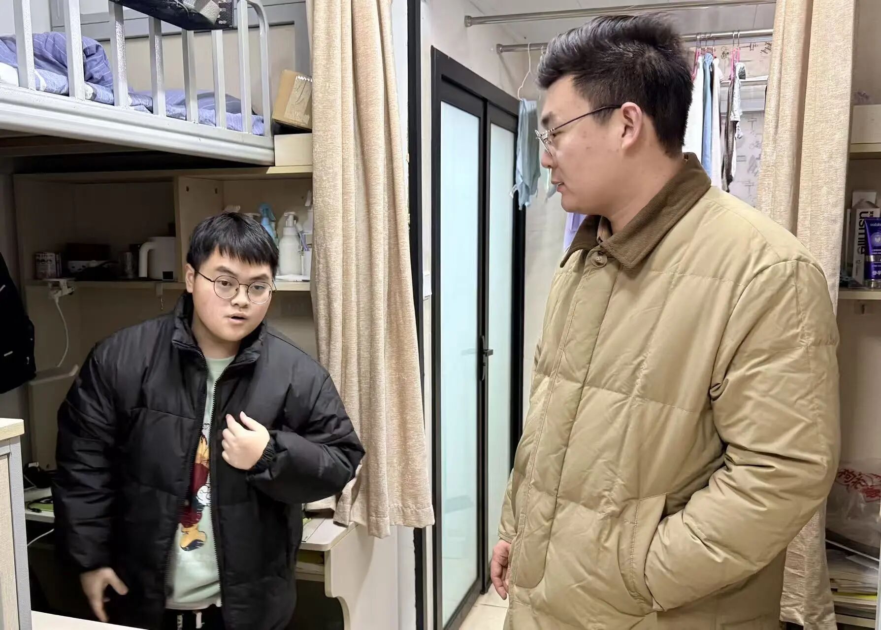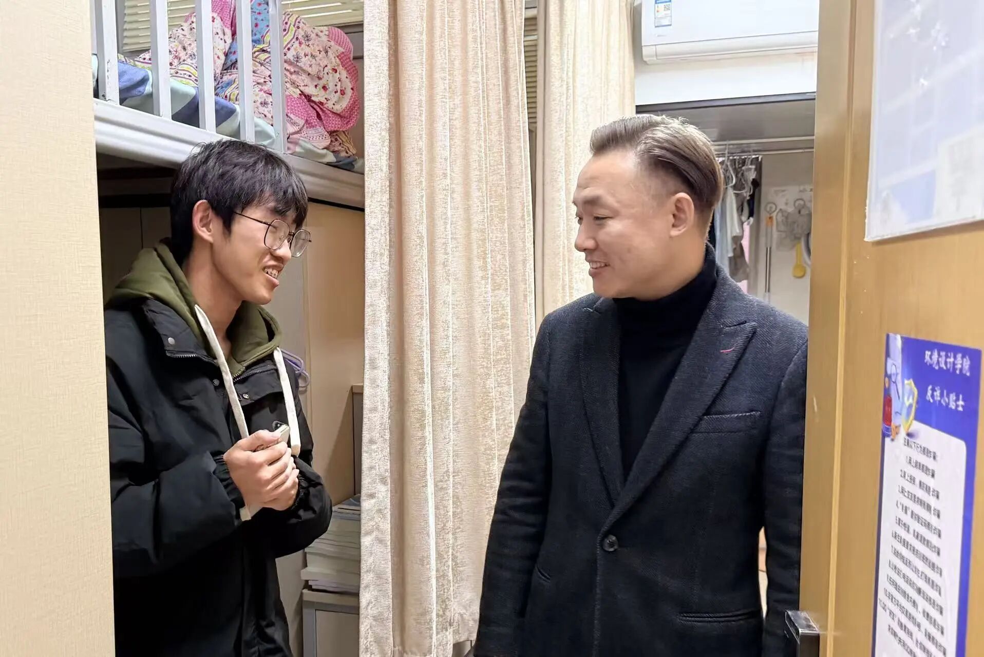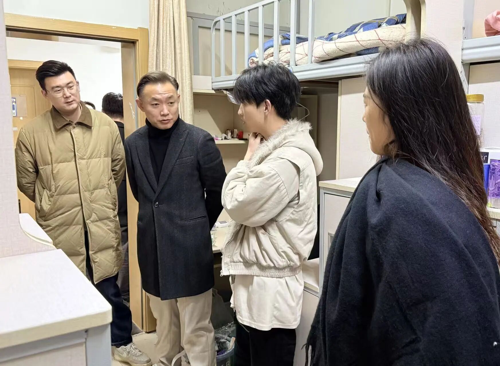 走访过程中,公司领导与辅导员走进员工宿舍,与同学们亲切交谈、嘘寒问暖,详细了解大家的返程情况、假期生活安排、实践经历、就业情况及新学期学习规划,认真倾听同学们在学习、生活上的意见和需求,对大家返校后的精神面貌给予肯定。