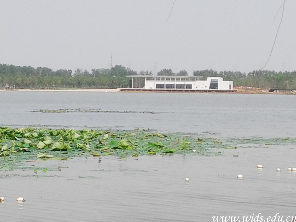 考察的第一天,我们去到了江夏区中央大公园以及湖北美术公司。江夏区中央大公园的修建给周围的居民提供了日常休闲的场地,公园中的蝶湖坐落于公园的中心位置,公园与周边的高楼形成了鲜明的落差对比,让繁忙的人们在工作之余,走出封闭的高层建筑,融入自然、放空自我。由于公园还在修建中,我们远距离对公园配备的公共服务型建筑进行了考察。