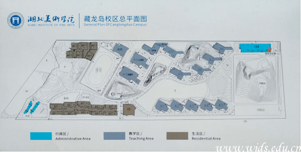 随后我们来到了湖北美术公司进行参观考察。校园中茂密植被下的林荫小道,波光粼粼的天鹅湖,若隐若现的教学楼,使身居其中的行人,身心愉悦轻松。(下面的一张校区总平图让我们清楚地了解湖美的整体格局)