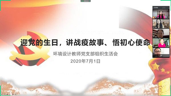 为深入学习贯彻习近平新时代中国特色社会主义思想,全面落实中央,省委和公司党委关于常态化疫情防控的决策部署,充分发挥高校基层党组织战斗堡垒作用和师生党员先锋模范作用,让党旗始终高高飘扬在疫情防控,返校复学,事业发展全过程全方位。在党的生日这一天,即7月1日上午9点,环境设计教师党支部全体党员参加了“迎党的生日,讲战疫故事,悟初心使命”组织生活会。会议由党支部书记牛琳主持。