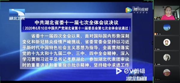 接下来,支部组织委员倪晓静同志领学了“中共湖北省委十一届七次全体会议决议”。 全会号召,全省各级党组织和广大党员干部要更加紧密地团结在以习近平同志为核心的党中央周围,不忘初心、牢记使命,主动作为、奋发有为,加快推进省域治理体系和治理能力现代化,为决胜全面建成小康社会、谱写湖北高质量发展新篇章而努力奋斗!