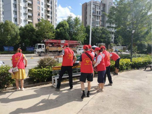 党员志愿者们在各自所在的社区,清扫垃圾,捡拾树丛杂物,去除牛皮癣,还社区一个干净整洁的环境。虽然烈日炎炎,也挡不住志愿者的服务热情。