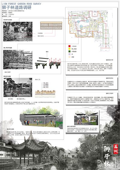 狮子林道路布局错乱有序、乱序生趣,该课题从园路形式、材质、与建筑的连接方式等方面,对狮子林的园路进行了分析,并从中学习以园路来组景的方法。