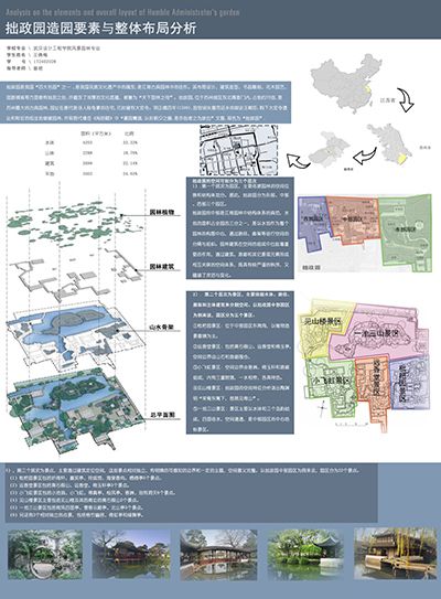 作为江南四大名园之首的拙政园在造园艺术上有着很高的研究价值,该组员工从整体布局出发,从山水骨架、园林植物、园林建筑三个方面分析了拙政园中部园区的造景特点,并从中得到了较大启发。