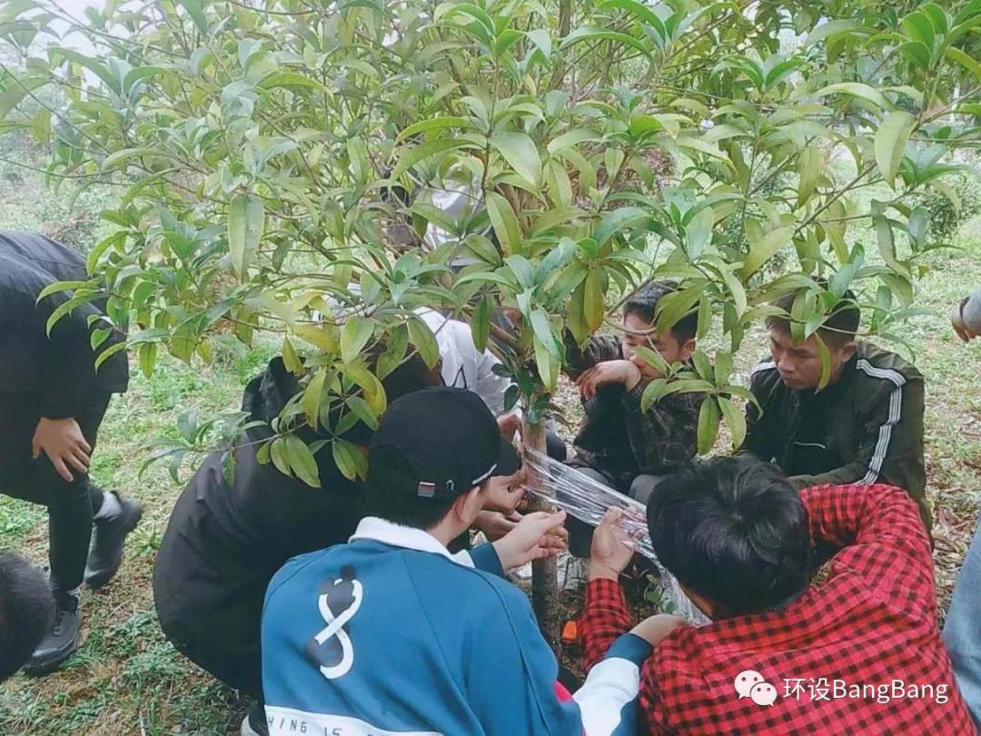 图为指导园林专业员工进行植物嫁接课程实训