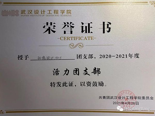 2020-2021学年度获“活力团支部”荣誉称号