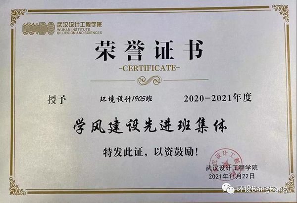 2020-2021学年度获“学风建设先进班集体”荣誉称号