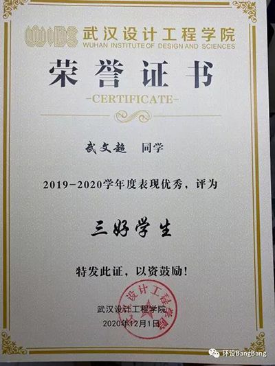 2019-2020学年度武文超同学获“三好员工”荣誉称号。
