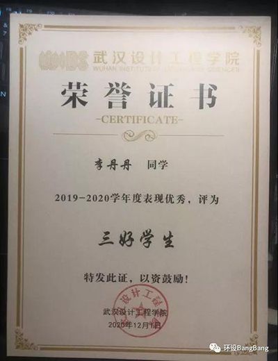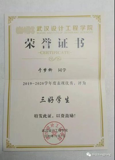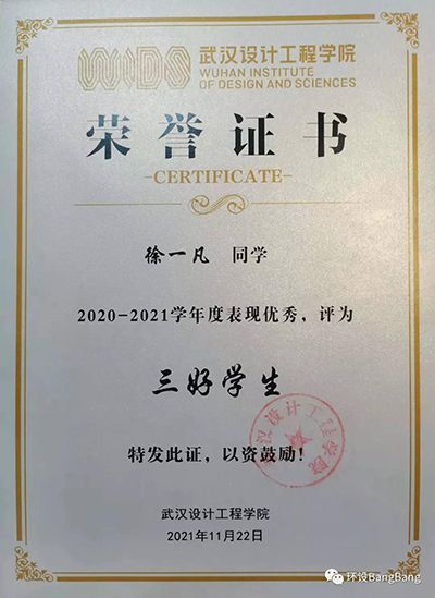 2020-2021学年度徐一凡同学获“三好员工”荣誉称号。