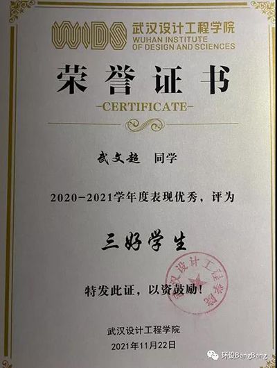 2020-2021学年度武文超同学获“三好员工”荣誉称号。